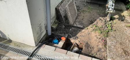Helaas ook dit voorjaar weer wat zware buien gehad met de nodige overlast door de slecht werkende afvoer van ons rioleringsstelsel en regenwaterafvoer, we hebben de boel toch maar ‘ns opengetrokken en de dompelpomp erin gezet.