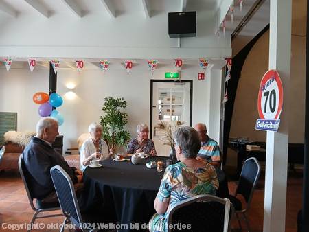Op vrijdag 6 juni hebben we ma Huizer haar 70e verjaardag mogen vieren met warm- en koudbuffet in “Het Wapen van Emmickhoven” in Almkerk, dit was een zeer geslaagde middag en avond met familie en vrienden. Vooraf aan deze gezellige dag hebben Monique en ik de boel mogen versieren.
