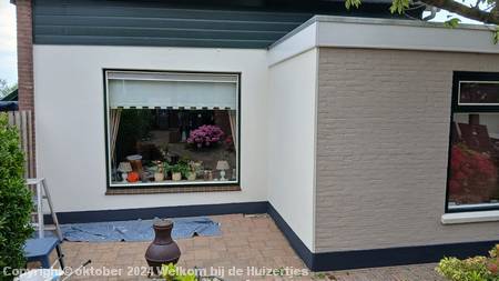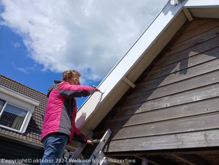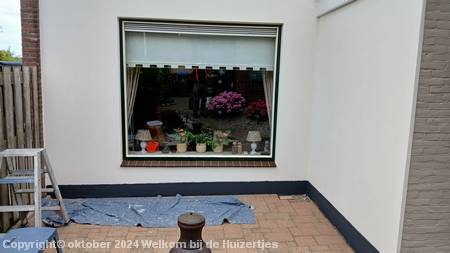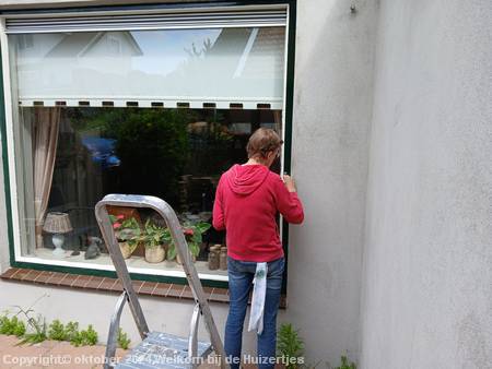 In de maand juni zijn we verder gegaan met de boel schuren en in de grondverf zetten, wel hebben we het kamerraam zoveel mogelijk af proberen te krijgen, omdat in augustus ons nieuwe zonnescherm geleverd zou worden.