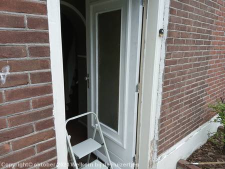 Maar ondanks dat ik in de ziektewet zat en echt op moest passen met m’n kuit heb ik toch op m’n gemak de voordeur geschuurd toen het weer iets beter ging, ook met de brander alle verf eraf gebrand met de nodige pauzes tussendoor.