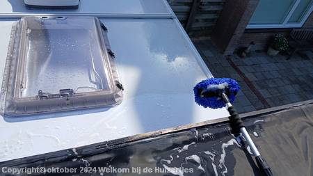 Tussen de bedrijven door hebben we de caravan ook weer grondig gewassen.