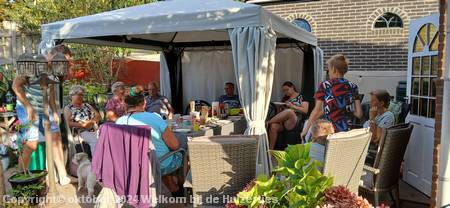 Na onze zomervakantie hebben we prachtig weer gehad, zodat we erg veel hebben kunnen doen, en daarvan hebben genoten met verschillende keren de barbecue aan en de tuinhaard gezellig aan en konden genieten onder ons tuinpaviljoen.