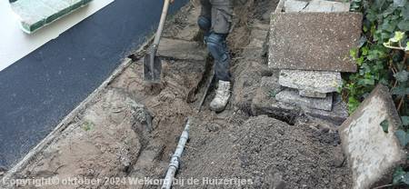 Eind september hebben we dan toch de oplossing voor het afvoerprobleem vooral tijdens buien, firma Den Dunnen heeft alles opengemaakt en een hele nieuwe riolering en regenwaterafvoer aangelegd en de boel opnieuw bestraat aan de noordkant van ons huis. Een hele klus waar ze bijna een week aan hebben moeten werken, maar het resultaat mag er zijn!